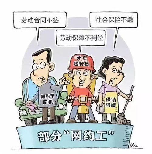 “網(wǎng)約工”打破了原來(lái)的“公司+員工”的模式,變成“平臺(tái)+個(gè)人”,大部分“網(wǎng)約工”以靈活、彈性、平臺(tái)、共享等就業(yè)形式存在,他們與互聯(lián)網(wǎng)平臺(tái)的法律關(guān)系較難界定。一些不具備法定意義上的勞動(dòng)合同關(guān)系,如一些網(wǎng)約平臺(tái)上的快遞騎手,當(dāng)中有相當(dāng)一部分人員是以“兼職”的身份存在于“網(wǎng)約”的雇傭關(guān)系里。這也讓“網(wǎng)約工”這一新興群體游離于傳統(tǒng)的工傷保險(xiǎn)制度以外,缺乏相應(yīng)的保障。