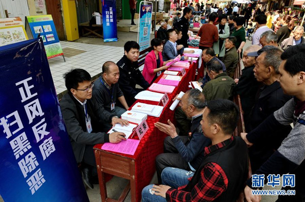 2018年4月1日,福建省建甌市接訪工作人員在小橋鎮(zhèn)墟日上接受群眾來(lái)訪。建甌市紀(jì)委在反腐“拍蠅”和掃黑除惡專(zhuān)項(xiàng)斗爭(zhēng)中,將治理黨員干部涉黑涉惡?jiǎn)栴}作為整治群眾身邊腐敗問(wèn)題的重要工作,通過(guò)專(zhuān)項(xiàng)巡察和下鄉(xiāng)接訪等方式廣泛聽(tīng)取群眾意見(jiàn),收集問(wèn)題線索,推進(jìn)全面從嚴(yán)治黨向基層延伸。新華社記者張國(guó)俊攝