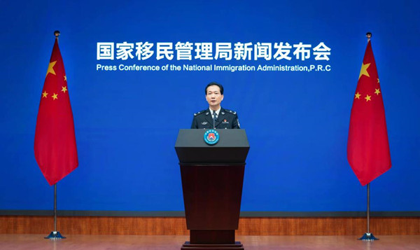 國(guó)家移民管理局新聞發(fā)言人、政策法規(guī)司司長(zhǎng)陳杰在介紹相關(guān)情況。(國(guó)家移民管理局供圖)