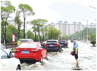 江西省新余市民警涉水疏導(dǎo)指揮交通