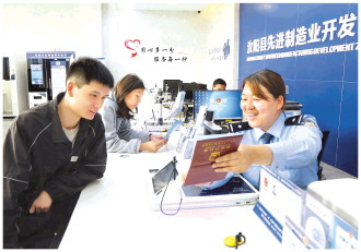 近日,河南省汝陽(yáng)縣公安局在先進(jìn)制造業(yè)開(kāi)發(fā)區(qū)建設(shè)公安政務(wù)服務(wù)大廳并設(shè)立“一窗通辦”窗口,把服務(wù)送到企業(yè)和群眾“家門口”。圖為5月22日,民警在“一窗通辦”窗口為群眾辦理戶籍業(yè)務(wù)。