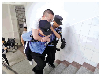 襄陽市公安局高新區(qū)分局將工作中發(fā)現(xiàn)的、身患殘疾行動不便考生送到考場,多名民警接力將其背到考試教室。