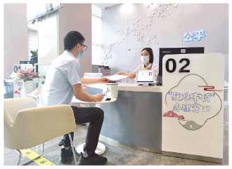 圖為企業(yè)相關(guān)負(fù)責(zé)人在佛山市禪城區(qū)行政服務(wù)中心“疑難事項(xiàng)”辦理窗口辦理相關(guān)業(yè)務(wù)。