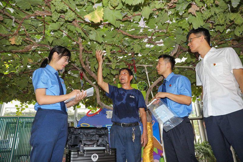 連日來,浙江省紹興市上虞區(qū)人民檢察院公益訴訟部門與相關(guān)職能部門聯(lián)合啟動(dòng)食品安全公益損害風(fēng)險(xiǎn)防控機(jī)制,對(duì)上虞野藤葡萄等區(qū)域特色農(nóng)產(chǎn)品現(xiàn)場(chǎng)采摘取樣,并進(jìn)行農(nóng)藥殘留及重金屬項(xiàng)目快速檢測(cè),從源頭上把好農(nóng)產(chǎn)品質(zhì)量安全關(guān)。圖為上虞區(qū)檢察院檢察官近日對(duì)野藤葡萄現(xiàn)場(chǎng)取樣。