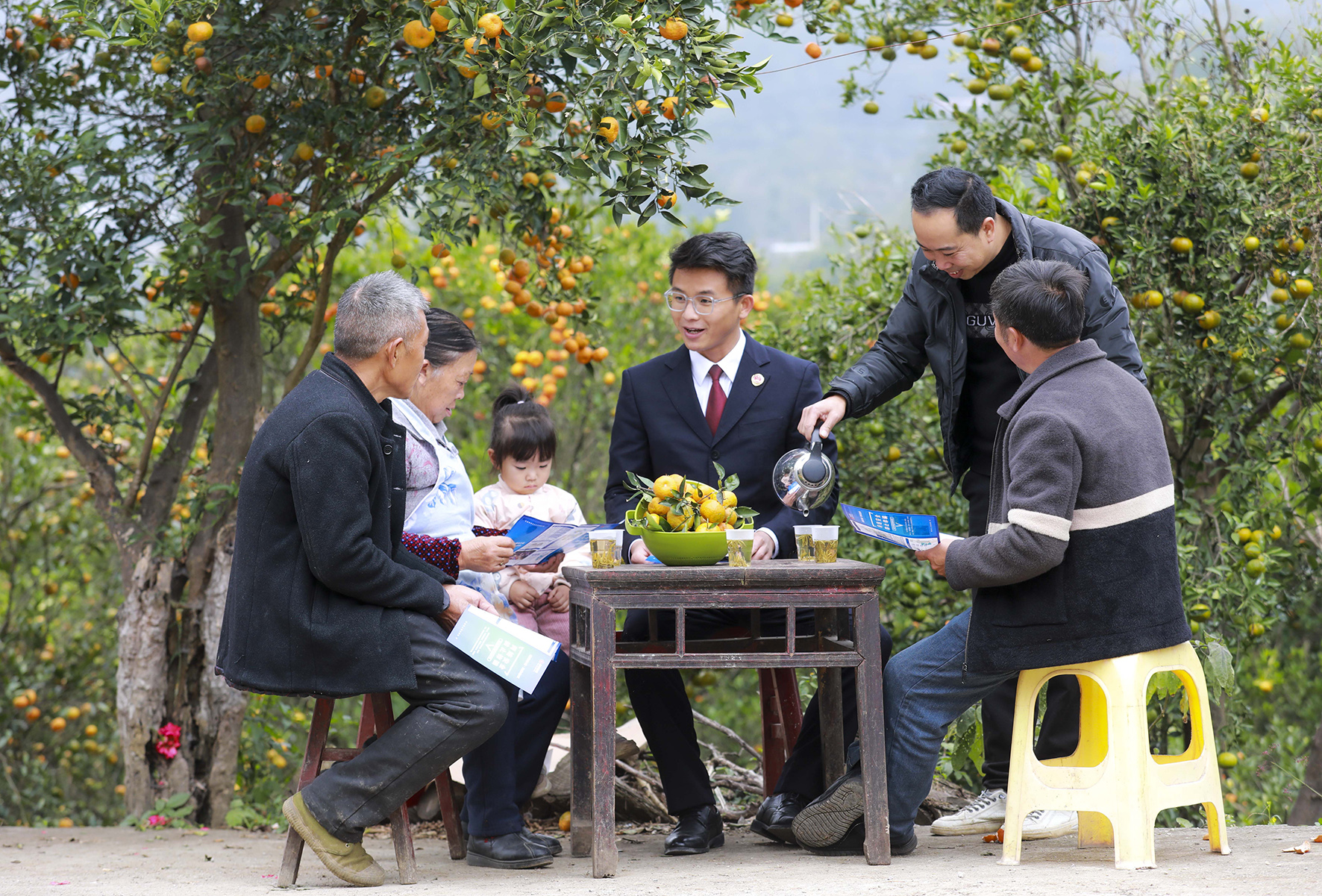 近日,貴州省黔西市人民檢察院開展“送法進(jìn)村助力鄉(xiāng)村振興”活動(dòng),檢察干警走進(jìn)該市素樸鎮(zhèn)索風(fēng)村農(nóng)家院子和果樹林,通過發(fā)放宣傳冊(cè)、現(xiàn)場解答、釋法說理等方式,開展防范電詐、交通安全、環(huán)境保護(hù)等相關(guān)內(nèi)容的宣傳,把法律法規(guī)送到農(nóng)戶家門口。圖為檢察干警在索風(fēng)村農(nóng)家院子給農(nóng)戶講解反詐知識(shí)。