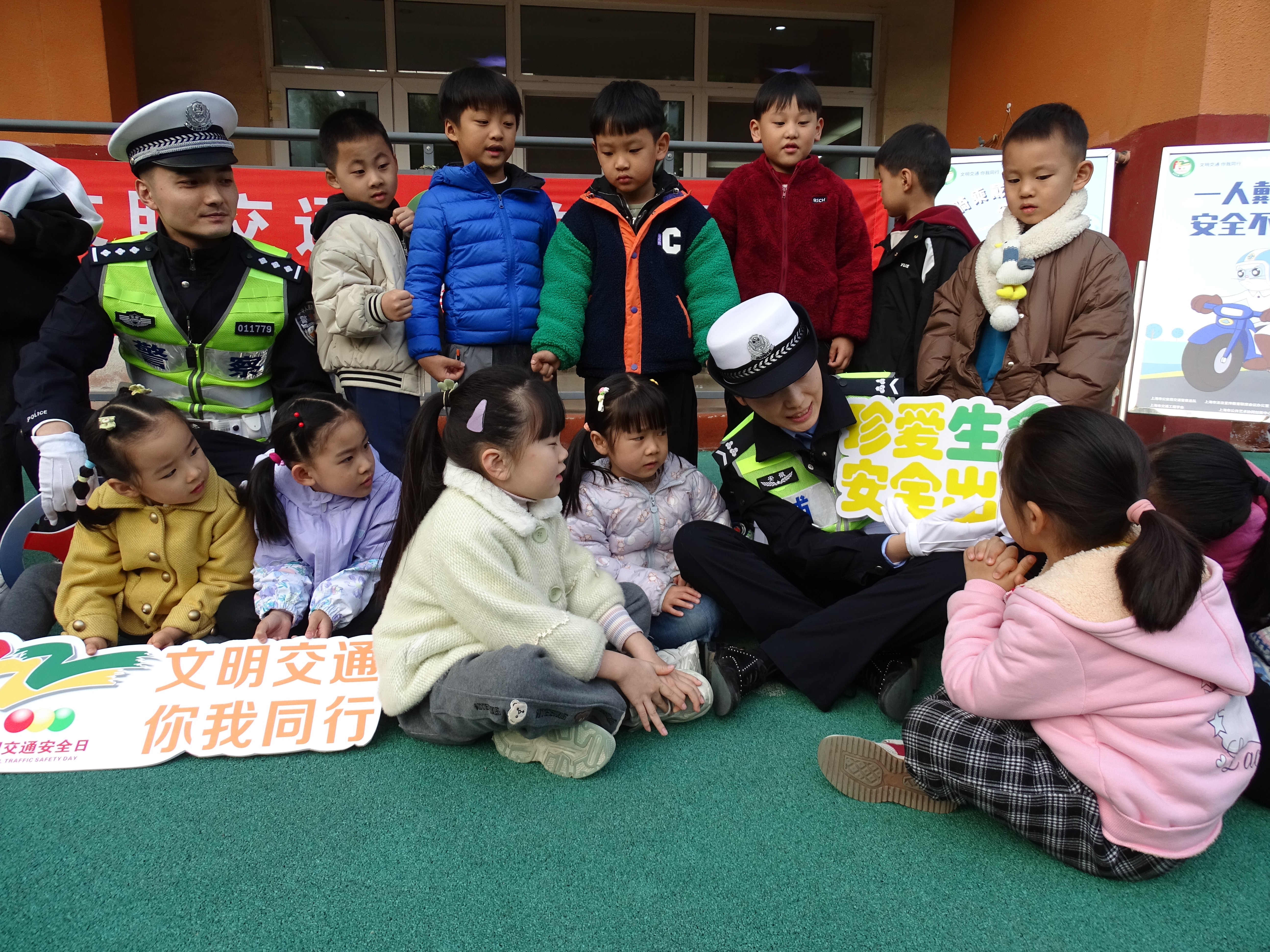 11月23日,安徽省蕪湖市公安局交警支隊(duì)鏡湖大隊(duì)組織開展“文明交通、你我同行”主題交通安全宣傳活動(dòng)。交警走進(jìn)轄區(qū)環(huán)城南路幼兒園,通過互動(dòng)問答等方式,提高孩子們道路交通安全意識(shí)。圖為交警向孩子們講解交通安全知識(shí)。