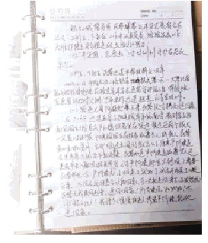圖③ 孔笛在日記本上記錄當(dāng)天走訪(fǎng)居民的情況。