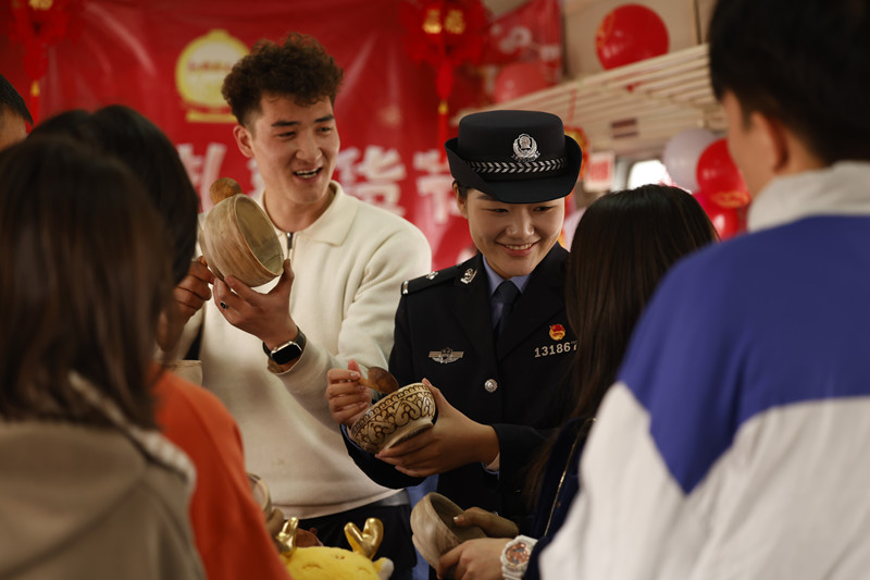 近日,在由和田開往烏魯木齊的7558次列車上,一年一度的列車流動巴扎(集市)年貨節(jié)“開市”。烏魯木齊鐵路公安局庫爾勒公安處乘警支隊抽調(diào)骨干民警值乘,全力保障守護列車流動巴扎,積極服務廣大旅客出行、購物需求。