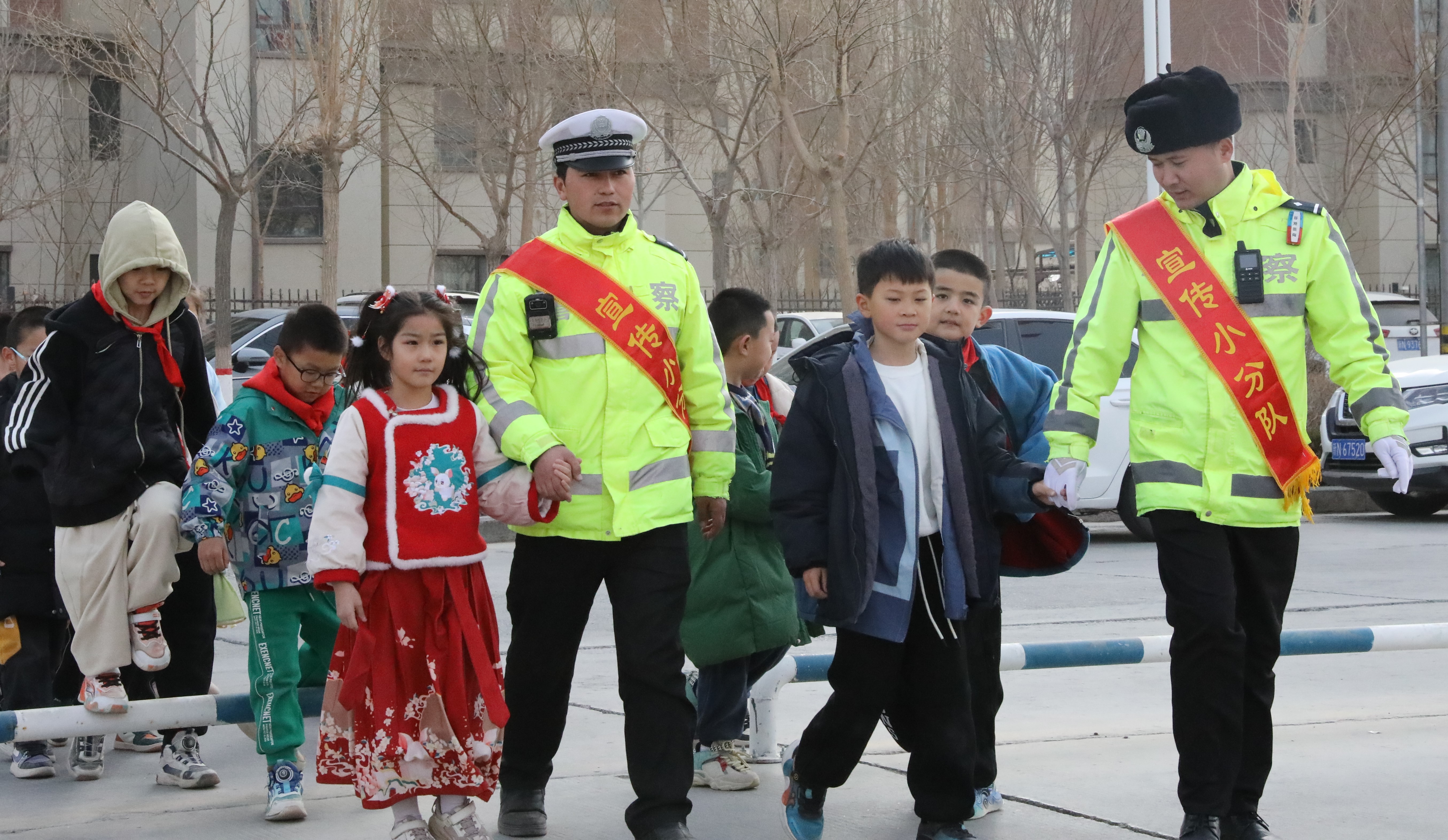 2月25日新學(xué)期的第一天,新疆維吾爾自治區(qū)阿克蘇地區(qū)溫宿縣公安局交通管理大隊民警走進溫宿縣第八中學(xué),開展“開學(xué)第一課”交通安全主題宣傳活動。圖為民警在學(xué)校操場上模擬現(xiàn)實場景,為學(xué)生們講解如何正確過馬路。