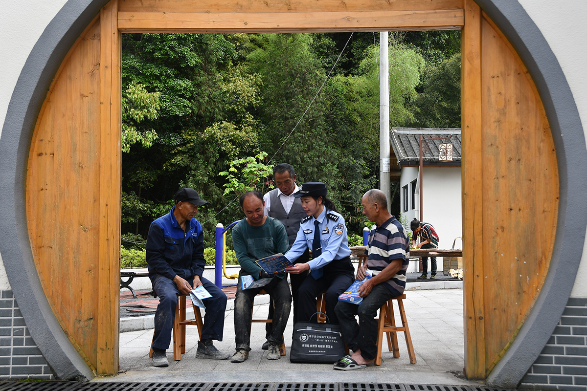 近日,福建省壽寧縣公安局下黨派出所民警走進村居開展防范經(jīng)濟犯罪宣傳,提升村民安全防范意識。圖為民警向村民介紹防范經(jīng)濟犯罪知識。