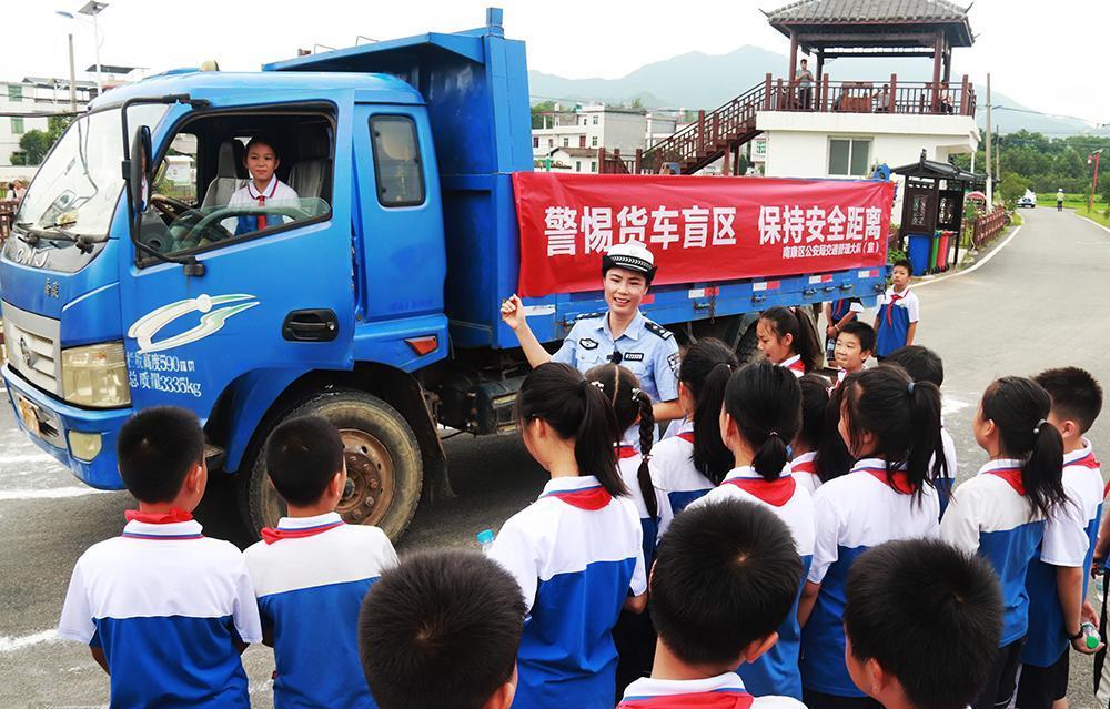 進入暑期以來,江西省贛州市南康區(qū)公安局交管大隊組織民警通過寓教于樂的形式開展交通安全教育活動,提高學生“知危險、會避險”的交通安全防護意識。圖為7月30日,民警組織孩子們體驗實景模擬貨車通行安全盲區(qū),宣講出行注意事項。
