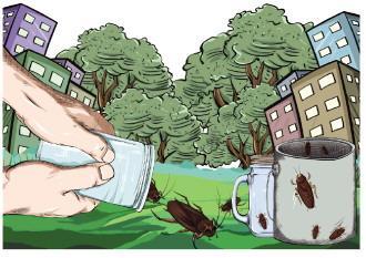 密密麻麻的蟑螂被從盒中放出,黑色的蟲影四下散開,瞬間沒入花壇不見。