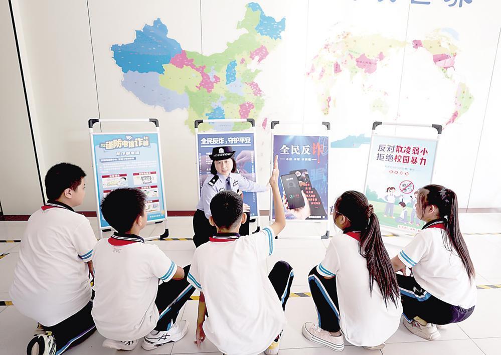 為進(jìn)一步加強(qiáng)反詐防騙宣傳力度,不斷提高師生防詐騙能力,河北省東光縣公安局反詐中心民警近日深入轄區(qū)中小學(xué)校,開展以“創(chuàng)建無詐校園 護(hù)航青春成長”為主題的反詐宣傳活動(dòng)。圖為民警為師生講解反詐知識。