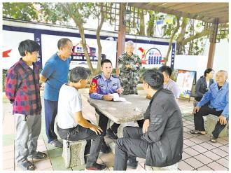 圖為李道峨(左四)在派出所開展矛盾糾紛化解工作