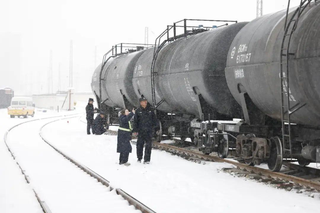 近日,烏魯木齊鐵路公安局庫(kù)爾勒公安處治安支隊(duì)會(huì)同庫(kù)爾勒站派出所深入轄區(qū)鐵路物流中心,對(duì)停靠車(chē)體、危險(xiǎn)易燃貨品開(kāi)展防災(zāi)減災(zāi)專項(xiàng)排查,確保安全生產(chǎn)。圖為民警正在進(jìn)行專項(xiàng)排查。