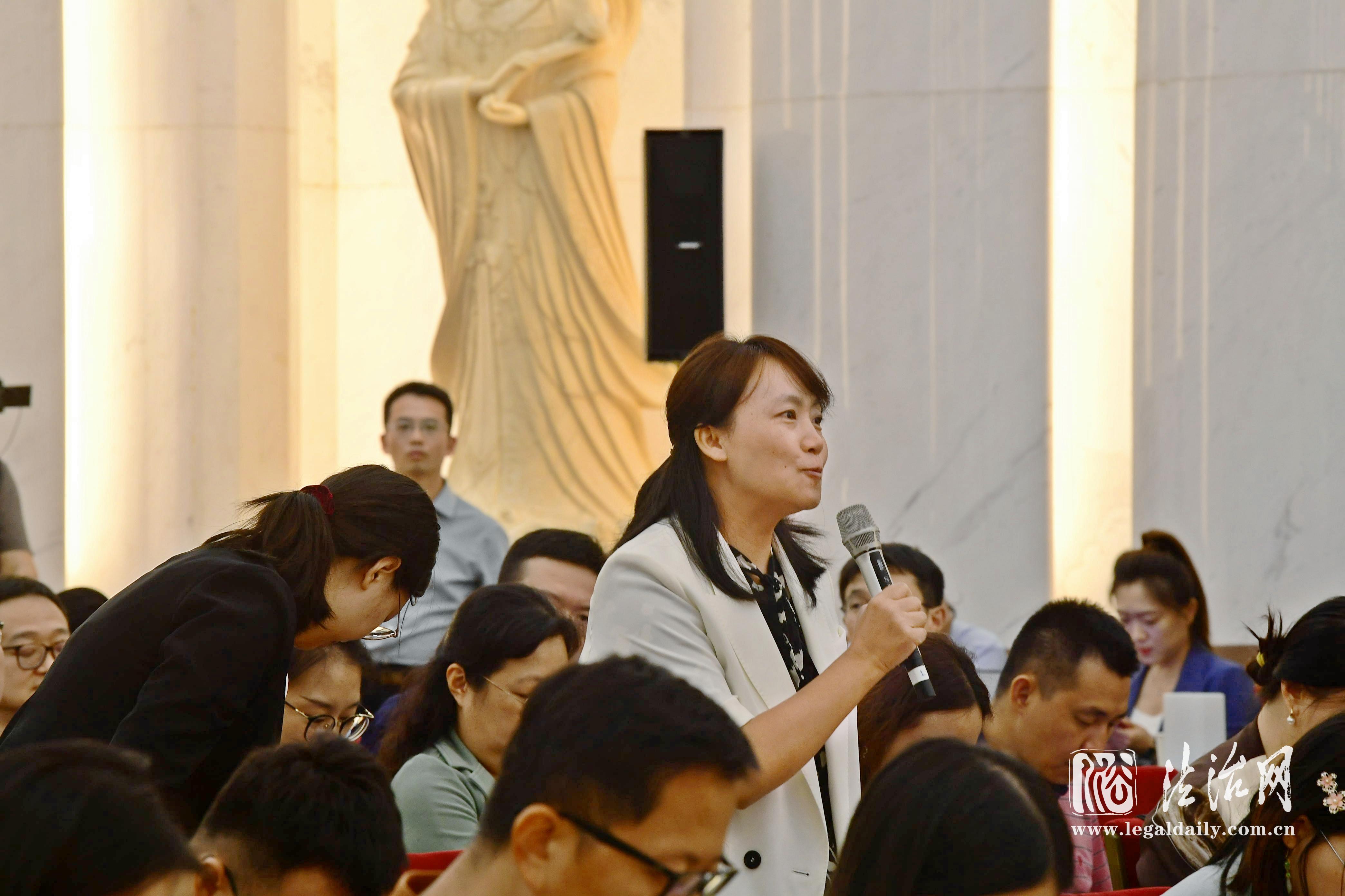 9月13日下午,全國(guó)人大常委會(huì)辦公廳舉行新聞發(fā)布會(huì)。圖為工人日?qǐng)?bào)記者提問(wèn)。張峻銘 攝