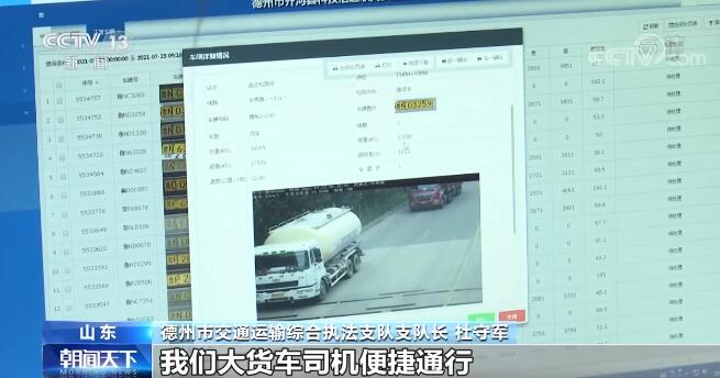 德州市交通運輸綜合執(zhí)法支隊支隊長 杜守軍:所有經(jīng)過的車輛如果出現(xiàn)違章了,我們就記錄在案,形成我們的電子信用臺賬。這樣既起到警示教育的作用,又起到維護我們大貨車司機便捷通行。