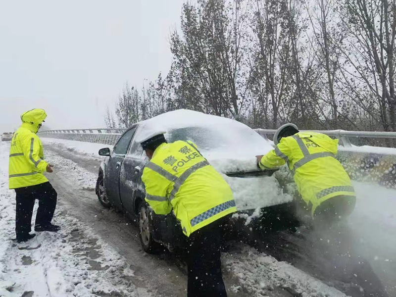 面對暴雪來襲,山東省濟南市公安局長清區(qū)分局多警聯(lián)動,巡警、交警和各派出所共同加大轄區(qū)治安交通巡防力度,通過在易發(fā)交通事故等重點路段采取定點執(zhí)勤和巡邏管控相結合的措施,幫助群眾解決上路期間發(fā)生的問題。11月7日上午10時30分,長清區(qū)交警大隊在大學城丁香路、紫薇路等重點路段執(zhí)勤中發(fā)現(xiàn)有拋錨車輛停在路中間,民警迅速前往救助,幫助過路受阻車輛及群眾,將車輛推至安全區(qū)域,并疏導交通、維持通行秩序。崮山派出所民警在國道104線巡邏時接到群眾求助,幫助遇困群眾車輛。歸德中隊交警幫助遇困車輛上的老人,將老人攙扶到中隊休息并送上熱水。