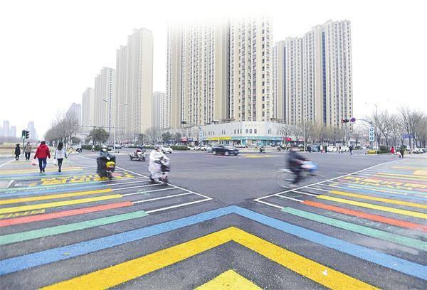 近日,濟南首條“彩虹琴鍵斑馬線”正式完工,亮相槐蔭區(qū)臘山河東路與興福寺路交叉口。路口中間是“繽紛五色,匯流成章”的主題圖案,充分體現了泉城濟南“山、泉、湖、河、城”的元素。在斑馬線中間,有“我愛濟南”“有你在,我安心”“幸福路,慢慢走”等溫馨的話語,還增加了“安全帶,幸福帶”“把安全‘戴’(頭盔)回家”等交通安全的宣傳標語。交警部門希望通過示范路口的“吸睛效應”,將這里打造成一個高效率的交通安全宣傳陣地,進一步增強廣大交通參與者的守法安全意識。(本報記者 崔健 攝)