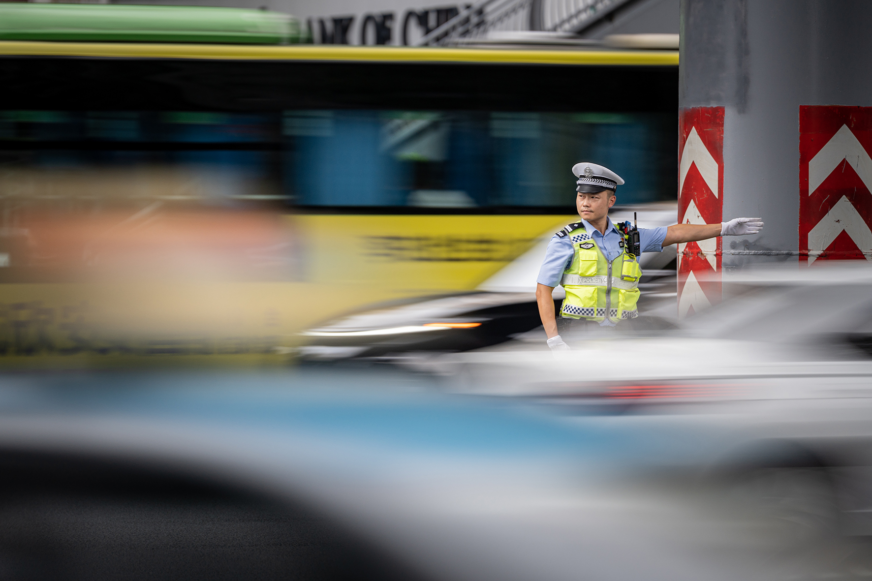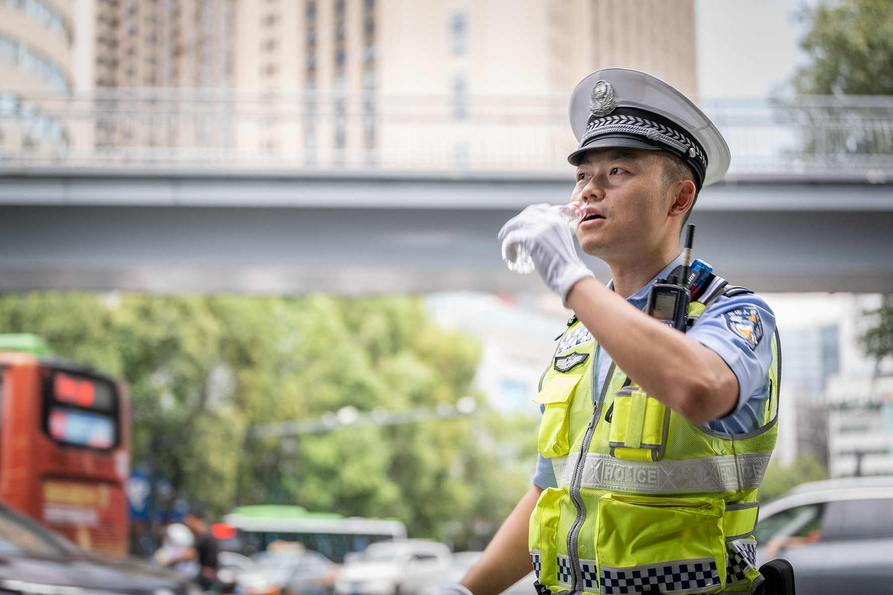 8月8日,四川省綿陽市出現(xiàn)34℃高溫天氣。綿陽市公安局交警直屬一大隊(duì)民警堅(jiān)守路面,冒高溫指揮疏導(dǎo)交通,確保道路安全暢通。