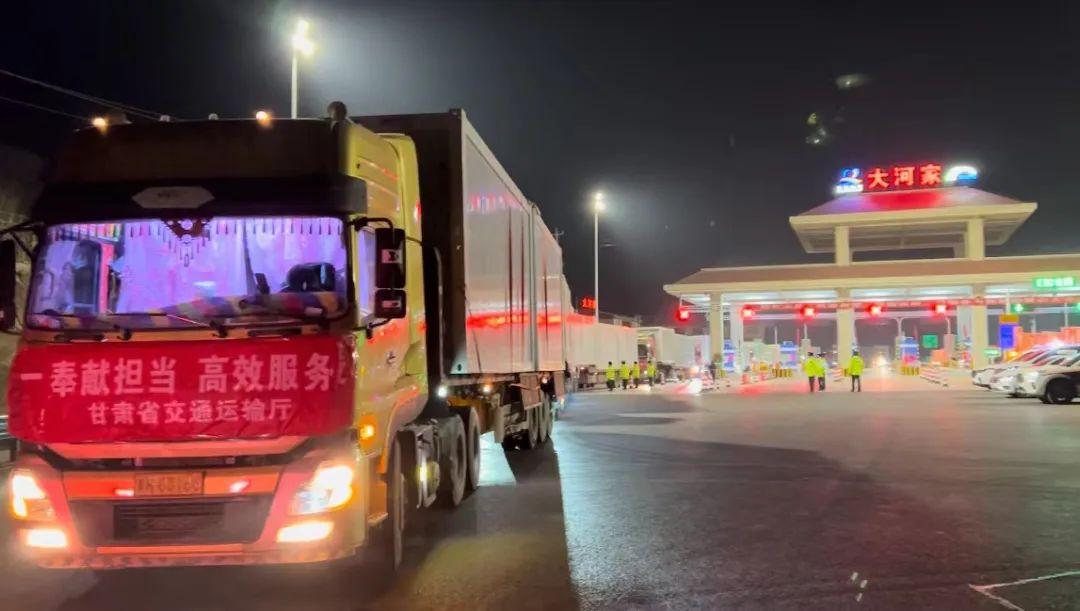 運(yùn)送救援物資的貨車車隊(duì)連夜趕赴積石山災(zāi)區(qū)