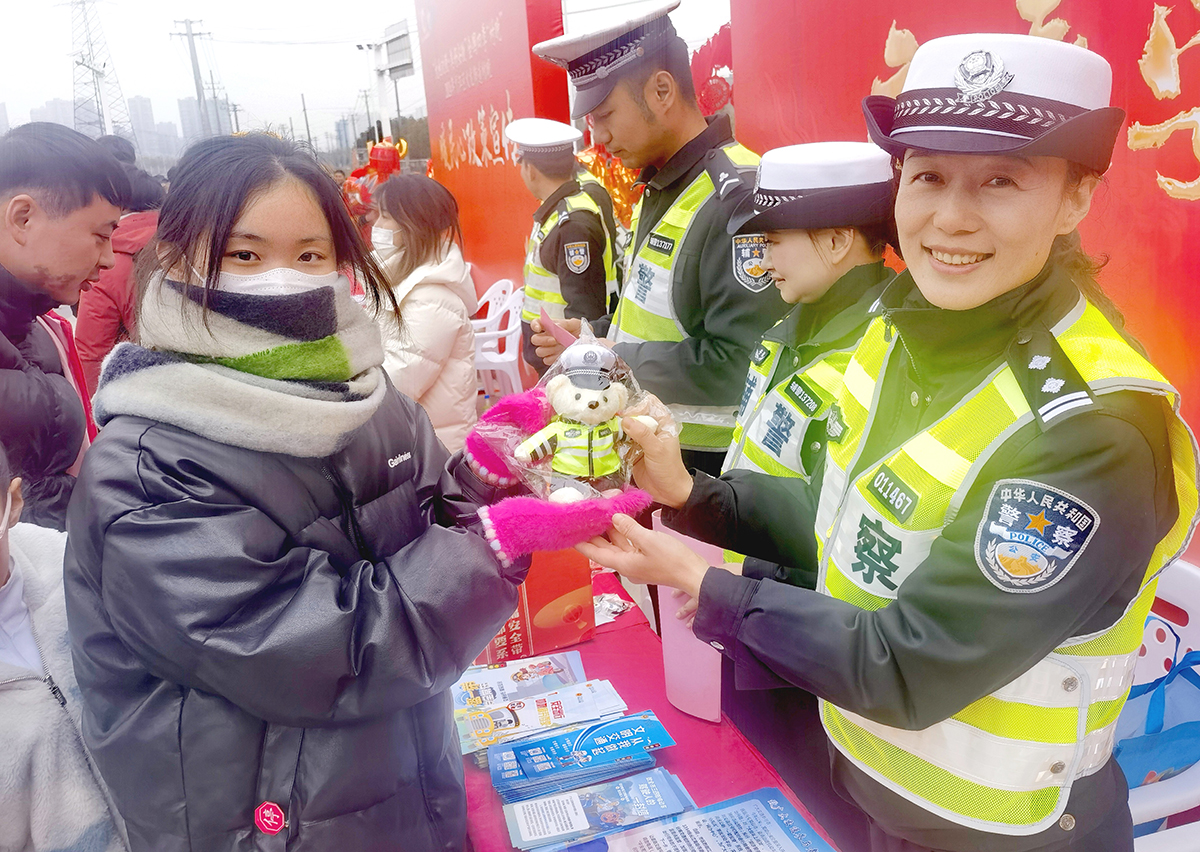 1月26日,安徽省蕪湖市公安局交警支隊鏡湖大隊開展“平安春運,幸福常伴”活動。民警深入鄉(xiāng)村,通過向群眾發(fā)放宣傳單、面對面講解等方式,提醒群眾遵守交通法規(guī),過一個安全幸福的新春佳節(jié)。