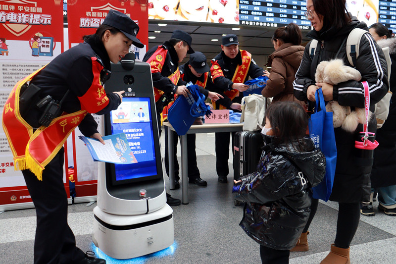 1月26日上午,北京鐵路公安局北京公安處在北京7大火車站和北京周邊6個(gè)高鐵站組織開展了“鐵警相伴,平安相隨”主題宣傳活動(dòng)。上海鐵路公安局徐州鐵路公安處連云港站派出所的民警化身“大圣”,“變著戲法”教授旅客防盜常識。深圳、開遠(yuǎn)、牡丹江等鐵路公安處通過“三句半”、有獎(jiǎng)知識問答等豐富多彩的活動(dòng),邀請旅客參與,增強(qiáng)宣傳效果。