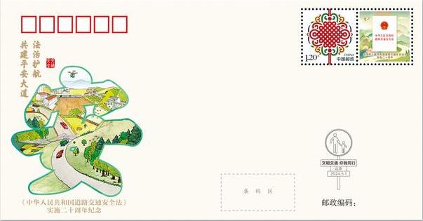 《中華人民共和國道路交通安全法》于2003年10月28日由第十屆全國人民代表大會常務委員會第五次會議通過,2004年5月1日起實施。20年來,我國相繼頒布實施《道路交通安全法實施條例》等一系列行政法規(guī),目前已經形成了完善的道路交通安全法律體系,在維護道路交通秩序、預防和減少交通事故、保護人民群眾生命財產安全方面發(fā)揮了重要作用。警郵雙方為紀念《中華人民共和國道路交通安全法》實施20周年,特別發(fā)布了紀念郵品,并通過郵票這一經典文化載體,傳播“自律、包容、禮讓、文明”的交通安全文化,推動社會各界、人民群眾更加了解《中華人民共和國道路交通安全法》,推動形成關心支持法治文明交通建設的良好氛圍。