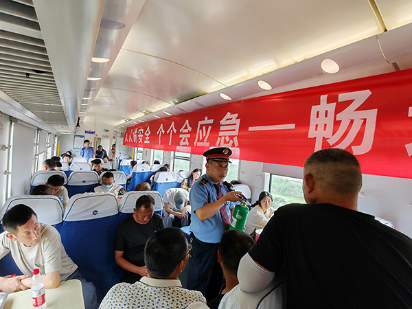 確保安全設(shè)施良好。該車隊(duì)對(duì)列車上部緊急制動(dòng)閥、手制動(dòng)機(jī)、電茶爐等安全、服務(wù)設(shè)施進(jìn)行了全面檢查。重點(diǎn)對(duì)列車易損備品、服務(wù)設(shè)施、應(yīng)急藥物等關(guān)鍵部位或備品進(jìn)行了細(xì)致檢查和統(tǒng)計(jì),發(fā)現(xiàn)問題及時(shí)整改。同時(shí),加強(qiáng)了列車運(yùn)行中日常乘務(wù)巡視工作,確保列車環(huán)境和服務(wù)設(shè)施在運(yùn)行過程中始終處于良好狀態(tài)。
