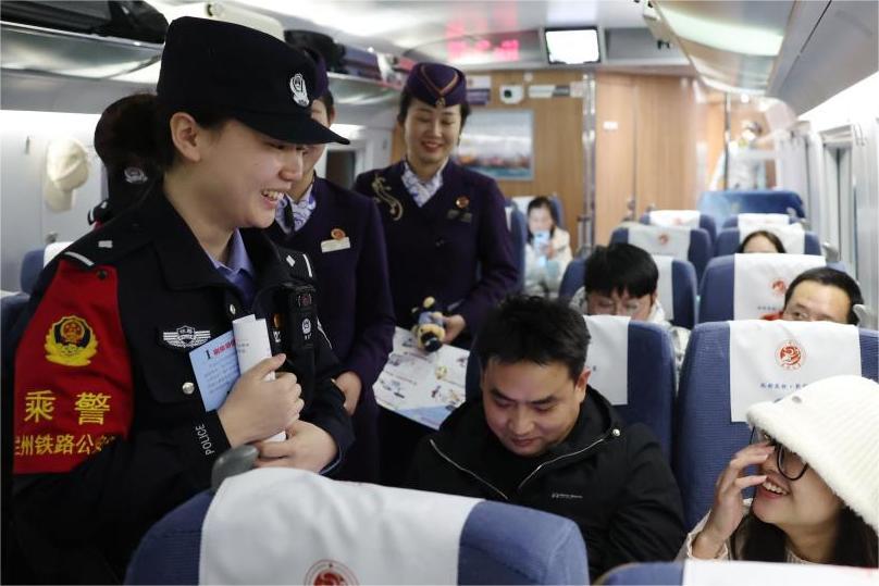 在值乘工作中,“玫瑰女子乘警組”的女警們結(jié)合高鐵列車的特點(diǎn)與實(shí)際情況,果斷處置各類突發(fā)警情,耐心傾聽(tīng)旅客求助,第一時(shí)間將糾紛矛盾化解于無(wú)形,同時(shí)開(kāi)展形式新穎、內(nèi)容豐富的安全知識(shí)宣傳,既是旅途平安的守護(hù)者,更是旅客的貼心人。