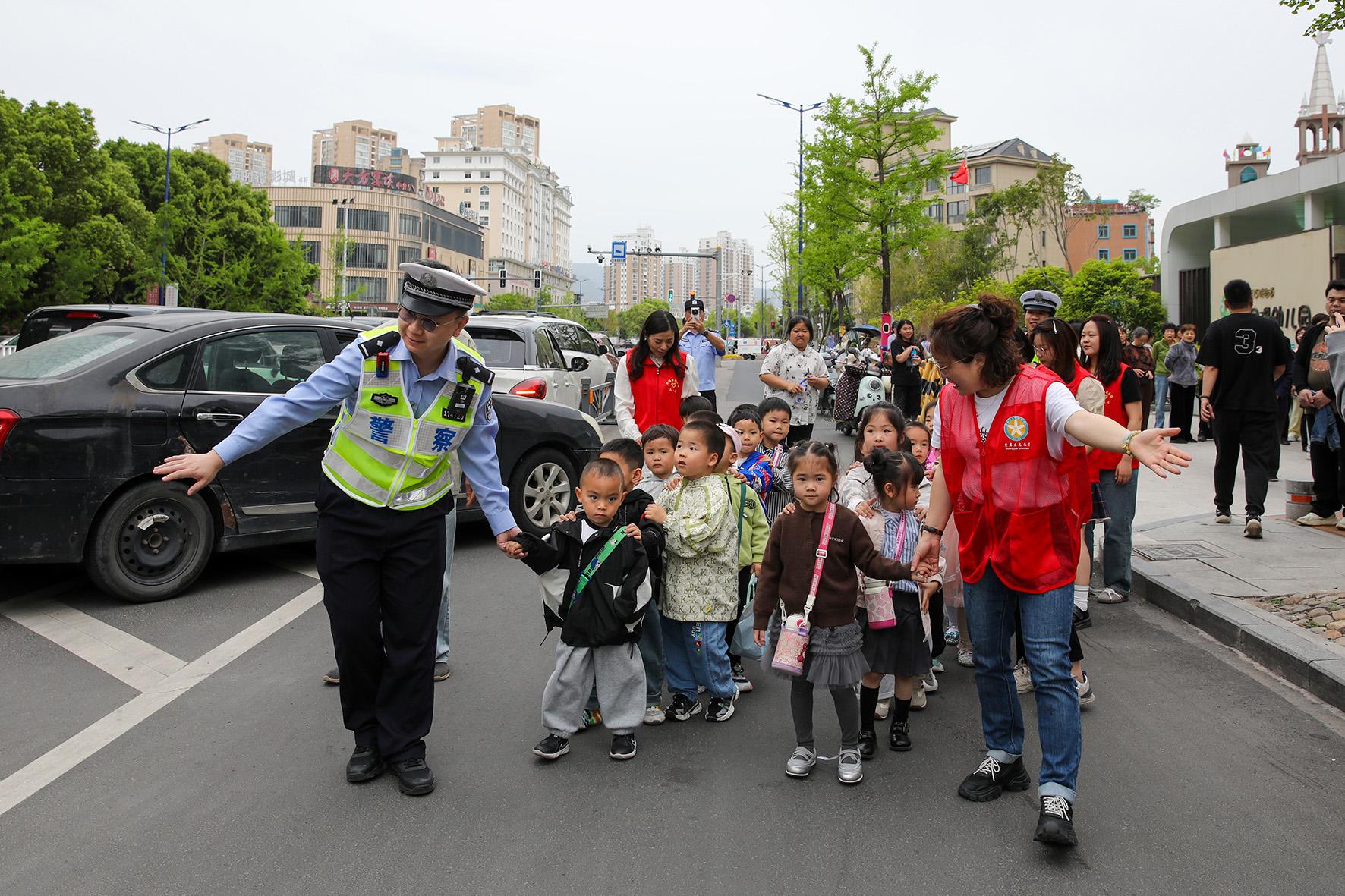 4月16日,浙江省臺州市公安局交警局直屬二大隊(duì)民警和西城街道西江社區(qū)工作人員一起站好護(hù)學(xué)崗,維護(hù)校園周邊交通、治安秩序。