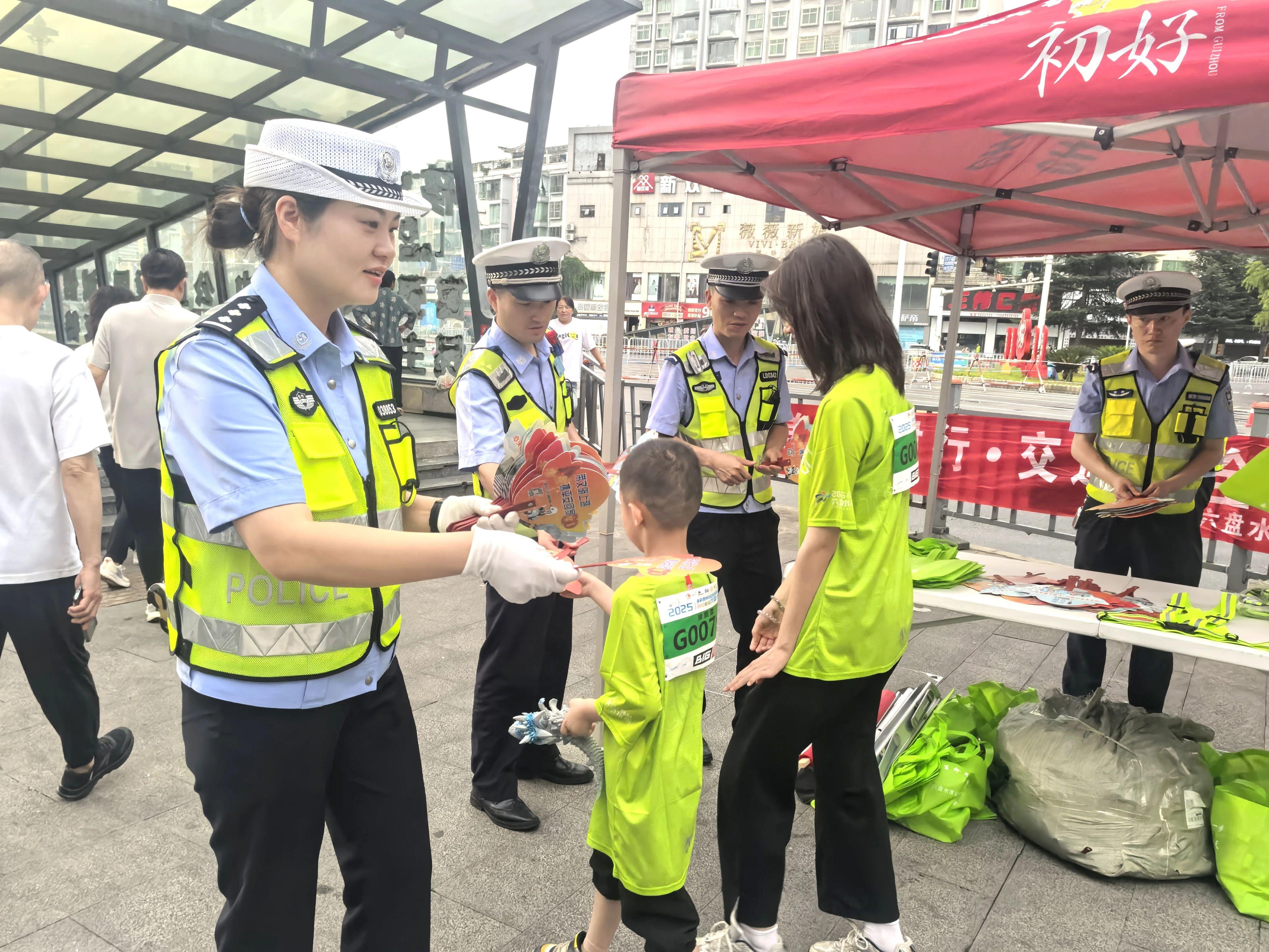 “被看見才安全”——暖心發(fā)放反光安全帶針對參賽者的特點,六盤水交警創(chuàng)新服務舉措,在活動現(xiàn)場設置宣傳服務臺向游客、群眾免費發(fā)放反光安全帶、小扇子,并現(xiàn)場講解夜間出行安全知識,提醒大家“被看見才安全”,有效提升夜間出行安全系數(shù)。