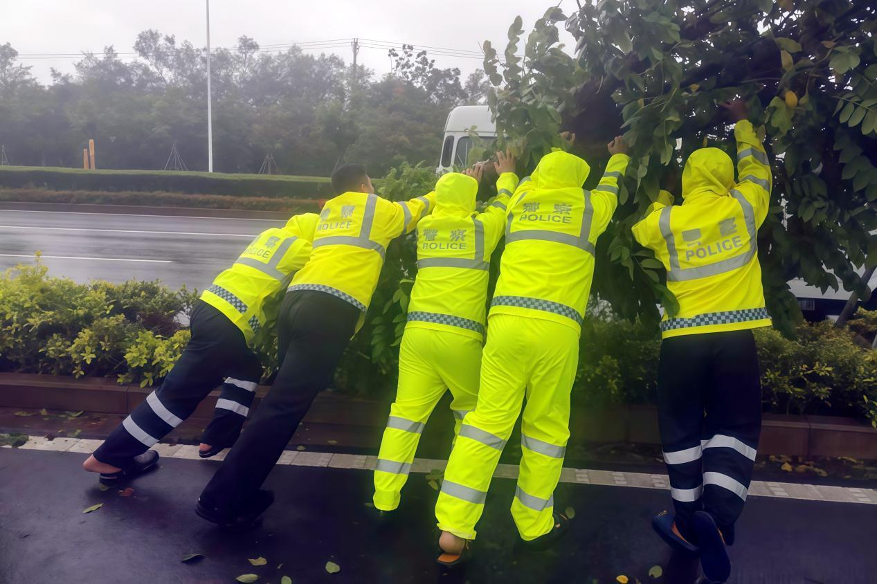 風(fēng)雨中,那一抹抹“熒光綠”格外醒目,扶正加固被吹倒的隔離護(hù)欄、徒手清理倒伏樹枝和路面雜物、及時(shí)疏通排水口確保道路暢通……暴雨模糊了視線,警笛穿透了風(fēng)聲,那抹熒光綠時(shí)而俯身?yè)岆U(xiǎn),時(shí)而挺立指揮,在白茫茫的雨幕中勾勒出最動(dòng)人的剪影。