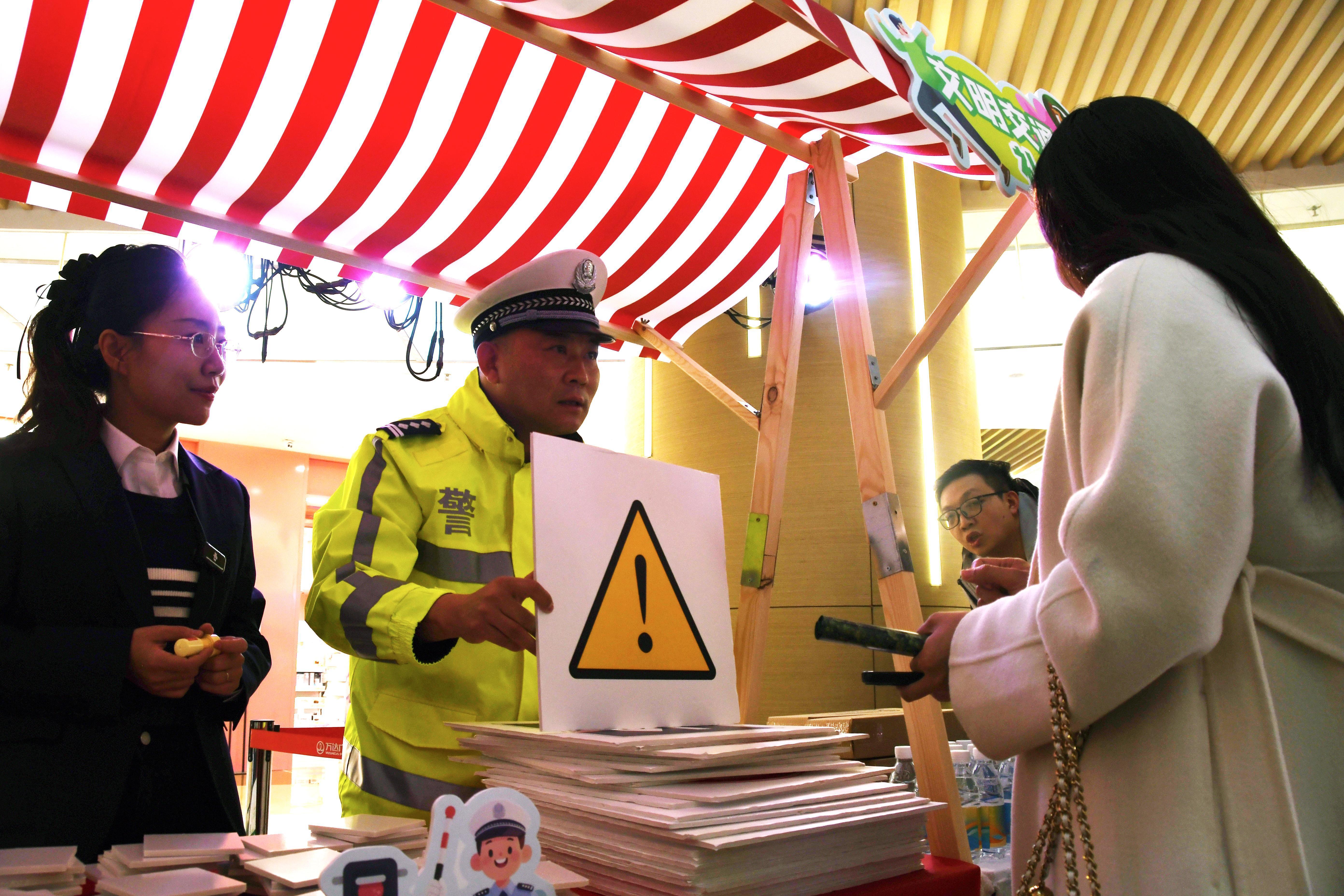 圖為交警與現(xiàn)場(chǎng)群眾開展互動(dòng)。