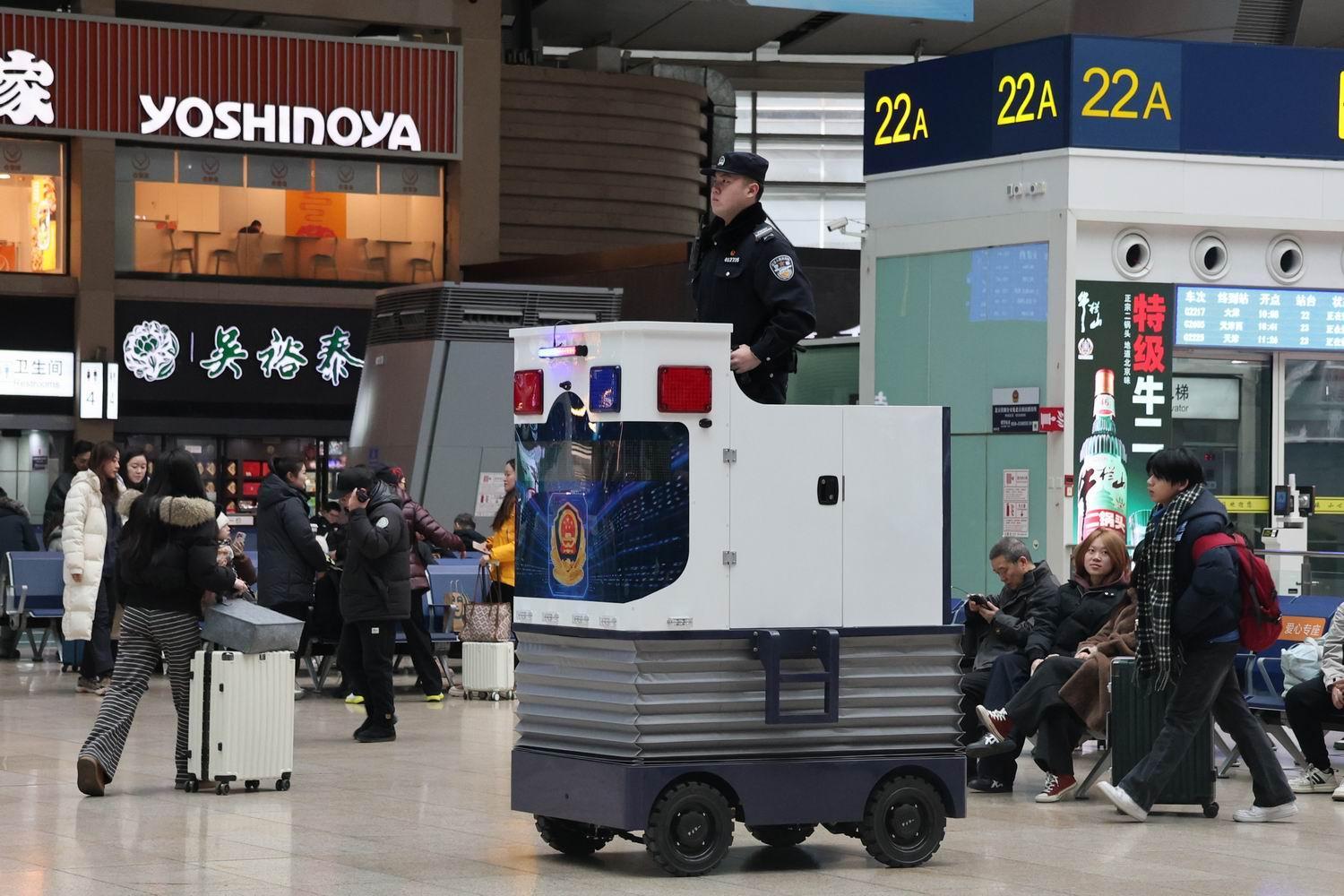 據(jù)北京鐵路公安處相關(guān)負(fù)責(zé)人介紹,為了解決此前北京南站、北京西站候車(chē)區(qū)因面積廣而導(dǎo)致“求助難”的情況,北京鐵警自2025年底在客流量大的車(chē)站醒目位置梯次投放了智能瞭望崗、多功能巡邏車(chē)等警用設(shè)施,通過(guò)高處“鷹眼”與地面“快腿”結(jié)合,使派出所對(duì)轄區(qū)全域有了更強(qiáng)的“掌控力”,同時(shí)顯著提升了為民服務(wù)的效率。通過(guò)點(diǎn)線結(jié)合的崗位模式,北京鐵路公安民警可以第一時(shí)間發(fā)現(xiàn)并響應(yīng)突發(fā)情況,確保警力快速集結(jié)、高效處置,推動(dòng)警務(wù)工作向主動(dòng)預(yù)防、精準(zhǔn)服務(wù)轉(zhuǎn)型。