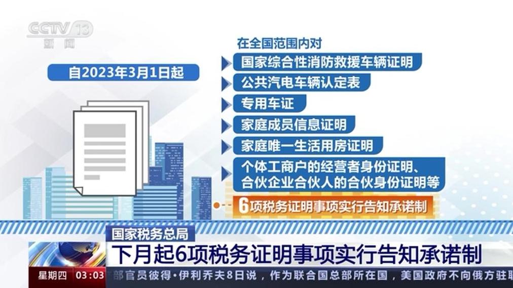 國(guó)家稅務(wù)總局 下月起6項(xiàng)稅務(wù)證明事項(xiàng)實(shí)行告知承諾制