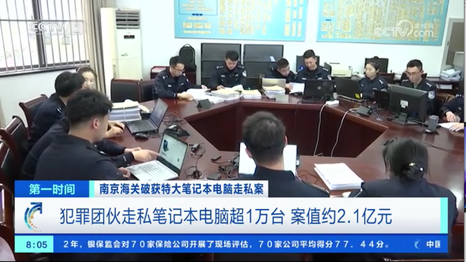 南京海關破獲特大筆記本電腦走私案 犯罪團伙走私筆記本電腦超1萬臺 案值約2.1億元