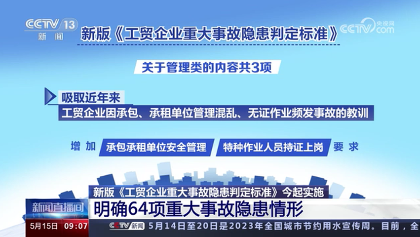 新版《工貿(mào)企業(yè)重大事故隱患判定標(biāo)準(zhǔn)》今起實(shí)施 明確64項(xiàng)重大事故隱患情形