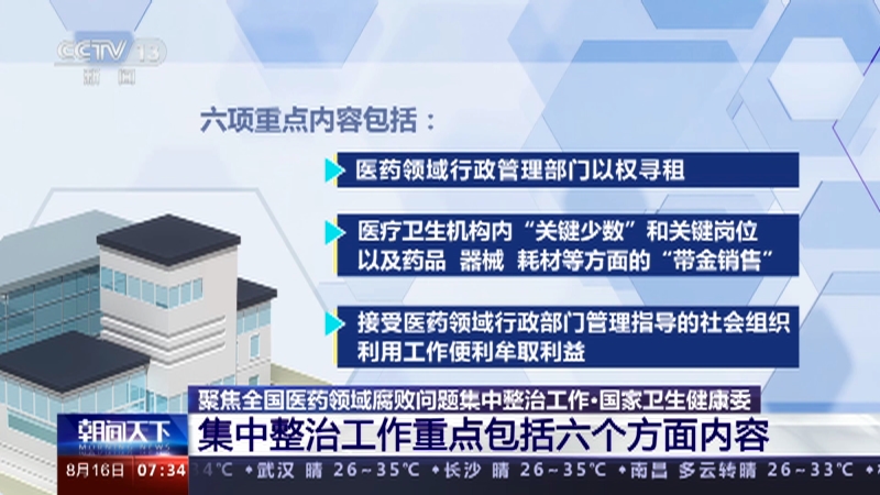 聚焦全國(guó)醫(yī)藥領(lǐng)域腐敗問題集中整治工作·國(guó)家衛(wèi)生健康委 集中整治工作重點(diǎn)包括六個(gè)方面內(nèi)容
