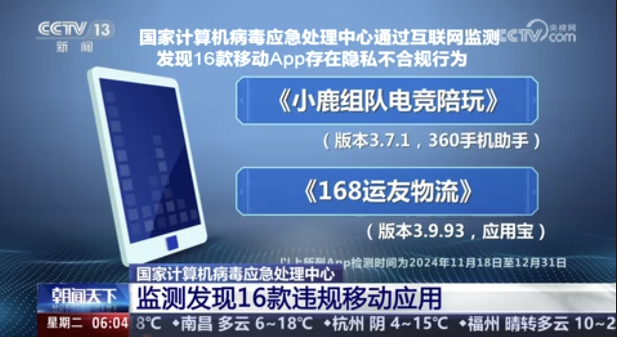 國(guó)家計(jì)算機(jī)病毒應(yīng)急處理中心 監(jiān)測(cè)發(fā)現(xiàn)16款違規(guī)移動(dòng)應(yīng)用