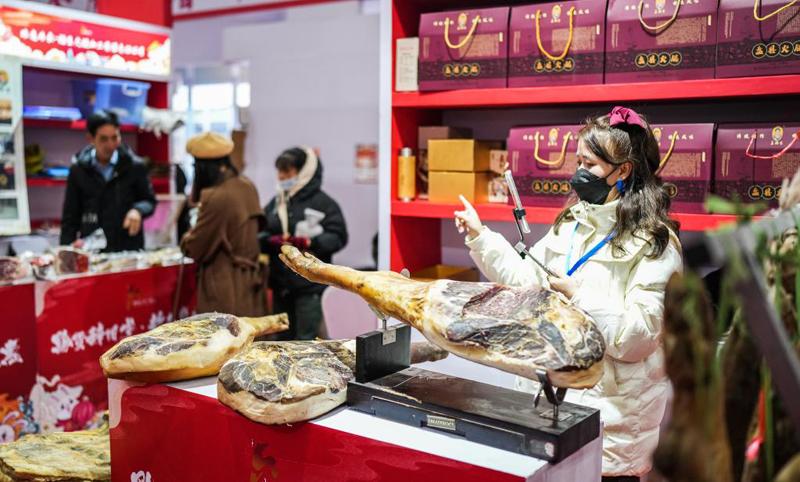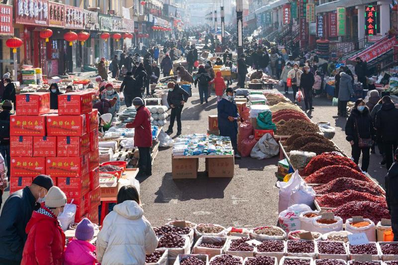 1月12日,市民在綏芬河市龍須溝步行街的年貨大集上選購(gòu)年貨。新華社記者 謝劍飛 攝