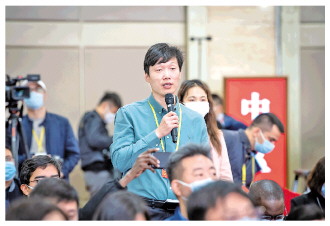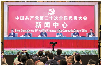 10月19日,黨的二十大新聞中心舉行記者招待會。圖為本報(bào)記者提問。 本報(bào)記者 王建軍 攝