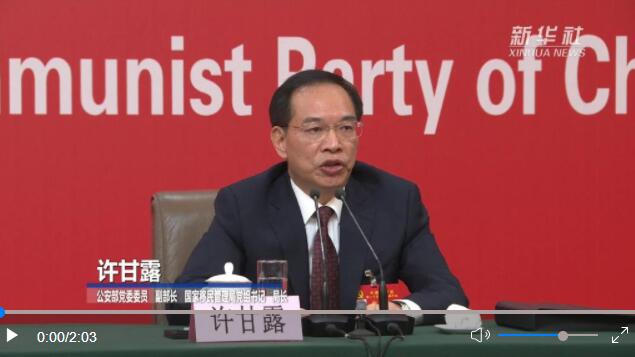 10月19日,中國(guó)共產(chǎn)黨第二十次全國(guó)代表大會(huì)新聞中心舉行記者招待會(huì)。中央政法委副秘書長(zhǎng)訚柏,最高人民法院黨組副書記、分管日常工作的副院長(zhǎng)、一級(jí)大法官賀榮,最高人民檢察院黨組副書記、分管日常工作的副檢察長(zhǎng)、一級(jí)大檢察官童建明,公安部黨委委員、副部長(zhǎng)、國(guó)家移民管理局黨組書記、局長(zhǎng)許甘露,司法部黨組成員、副部長(zhǎng)左力圍繞“堅(jiān)持以習(xí)近平法治思想為指引 努力建設(shè)更高水平的法治中國(guó)”主題與記者交流。許甘露表示,當(dāng)今中國(guó)成為世界上公認(rèn)的最安全的國(guó)家之一。