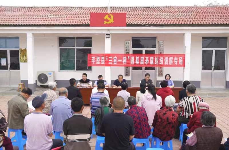 平原縣政法系統(tǒng)充分發(fā)揮法治作用,加快推進(jìn)基層社會(huì)治理現(xiàn)代化,開展“三官一律”即“檢察官、法官、警官和律師(法律工作者)”進(jìn)村社活動(dòng)。政法干警從機(jī)關(guān)向基層下沉,努力夯實(shí)基層基礎(chǔ),全力維護(hù)基層平安,主動(dòng)化解矛盾糾紛,促進(jìn)鄉(xiāng)村法治建設(shè),打通農(nóng)村法治服務(wù)的“最后一公里”。圖為“三官一律”在龍門街道劉莊村調(diào)解矛盾糾紛。德州市委政法委供圖