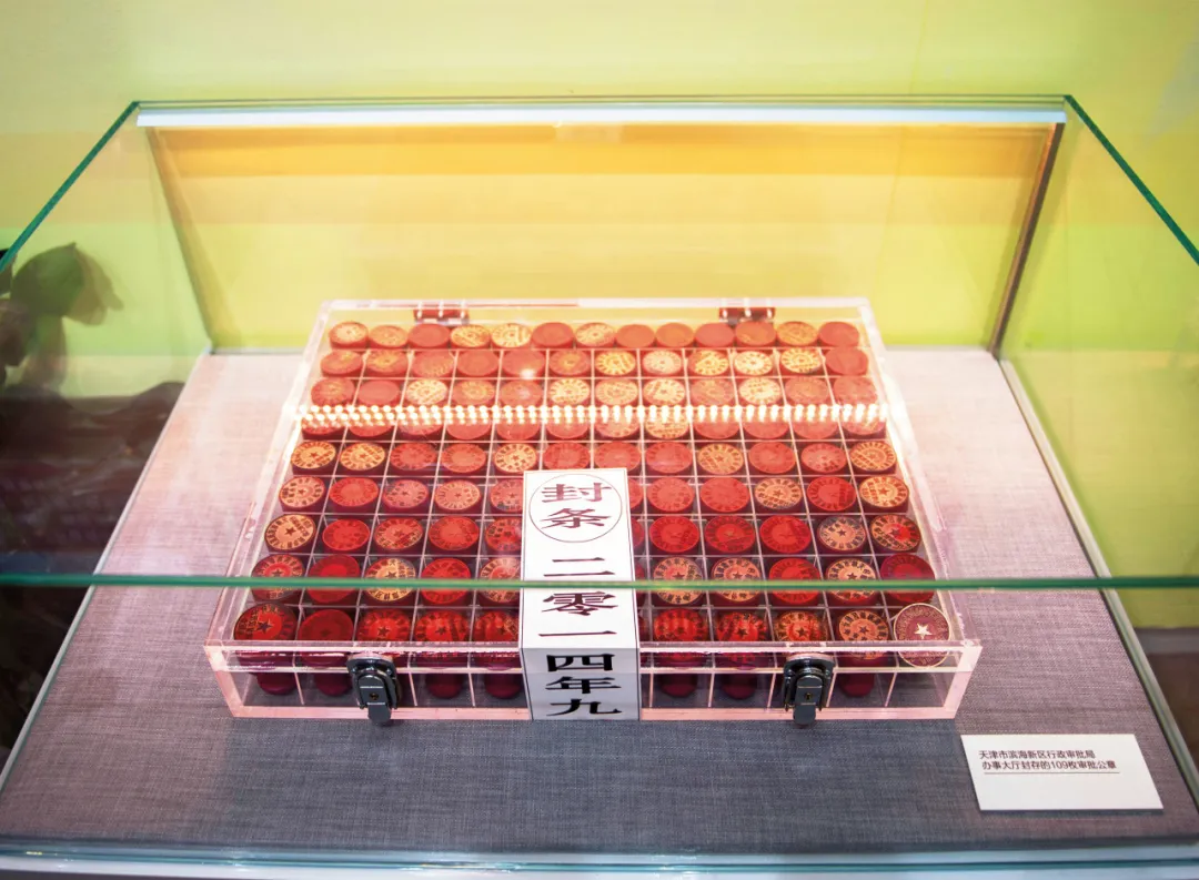 改革和法治如同鳥(niǎo)之兩翼、車之兩輪。必須堅(jiān)持全面依法治國(guó),在法治軌道上深化改革、推進(jìn)中國(guó)式現(xiàn)代化。圖為中國(guó)國(guó)家博物館收藏的來(lái)自天津市濱海新區(qū)的109枚審批公章(資料照片)。 新華社發(fā)