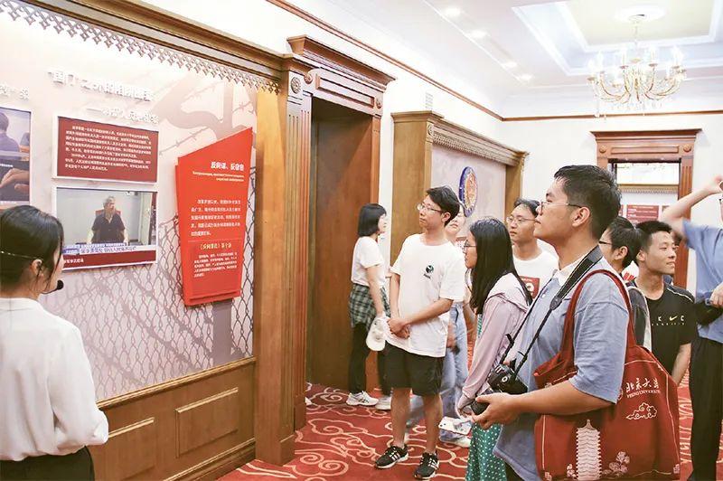 綏芬河國家安全教育展館面積約1100平方米,由序廳、總體國家安全觀、無名豐碑、周恩來展區(qū)等8個部分組成,展示了總體國家安全觀、黨的隱蔽戰(zhàn)線光輝歷史、當前斗爭形勢等內容。李大釗、周恩來等老一輩革命家在綏芬河出入境蘇聯(lián)時曾秘密下榻于此。作為早期紅色秘密國際通道、秘密交通線掩護站點,展館建筑如今成為珍貴的紅色革命歷史遺址。圖為2023年8月15日,大學生在展館內參觀學習。國安宣工作室供圖