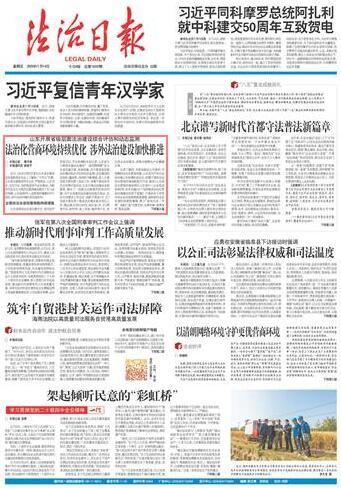 山東省委依法治省辦成員,省司法廳黨委委員、副廳長田秀娟告訴記者,近年來,山東省堅持一體推進涉外立法、執(zhí)法、司法行政、守法和法律服務(wù)、法治人才培養(yǎng),積極建設(shè)濟南、青島中央法務(wù)區(qū),打造集訴訟、調(diào)解、仲裁等于一體的涉外法律服務(wù)平臺。召開全省涉外法治建設(shè)工作會議,印發(fā)《關(guān)于進一步加強涉外法治工作的若干措施》,組建山東省國際貿(mào)易摩擦法律服務(wù)團,建立25家應(yīng)對國際貿(mào)易摩擦工作站,構(gòu)建起覆蓋省市縣三級的國際貿(mào)易摩擦預(yù)警工作機制。同時,完善涉外司法標(biāo)準(zhǔn)和程序,深入實施涉外審判精品戰(zhàn)略,5年來審結(jié)一審涉外民商事案件3572件、辦結(jié)國際司法協(xié)助案件2169件。