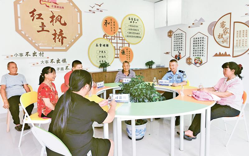 ??黨的十八大以來(lái),各地堅(jiān)持在創(chuàng)新中發(fā)展新時(shí)代“楓橋經(jīng)驗(yàn)”,在推動(dòng)基層社會(huì)治理實(shí)踐中貫徹黨的群眾路線,充分運(yùn)用法治思維,不斷賦予“楓橋經(jīng)驗(yàn)”新的時(shí)代內(nèi)涵。圖為2024年8月30日在福建省龍巖市上杭縣公安局才溪派出所調(diào)解室拍攝的調(diào)解現(xiàn)場(chǎng)。 新華社記者 魏培全/攝