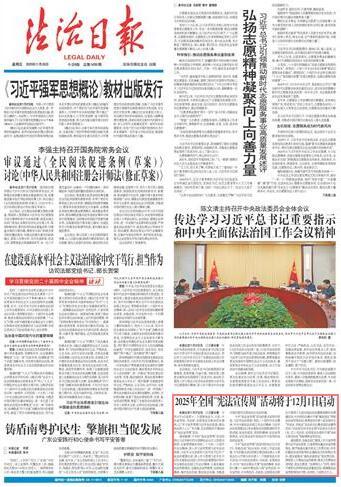 本報北京11月27日訊 記者蔡長春 今年12月4日是第十二個國家憲法日。日前,中央宣傳部、司法部、全國普法辦聯(lián)合印發(fā)通知,以“學習宣傳貫徹習近平法治思想,推動憲法深入人心”為主題,在全國組織開展2025年“憲法宣傳周”活動。