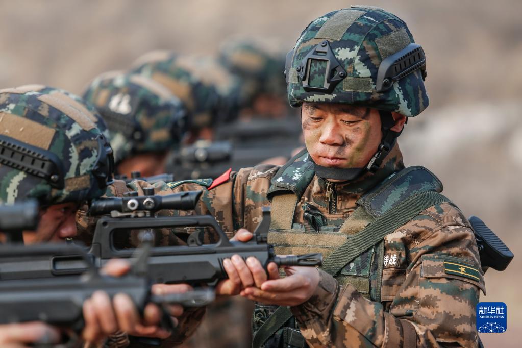 武警河北總隊(duì)某部大隊(duì)長(zhǎng)李闖組織特戰(zhàn)隊(duì)員進(jìn)行據(jù)槍訓(xùn)練(2021年3月4日攝)。新華社發(fā)(張丹 攝)